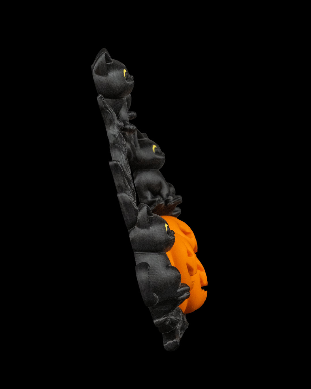 Una decorazione da appendere che unisce l’eleganza misteriosa dei gatti neri ed il fascino festoso delle zucche intagliate. 🎃